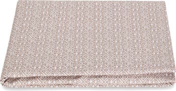 A small-scale block print defines a fitted sheet crafted from Italian-made cotton percale.