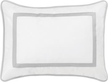 A lightweight 500-thread-count boudoir sham cut from the softest Egyptian cotton has a sophisticated tape appliqué trim that adds an elegant touch to any room.