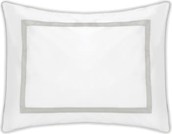 A lightweight 500-thread-count sham cut from the softest Egyptian cotton has a sophisticated tape appliqué trim that adds an elegant touch to any room.