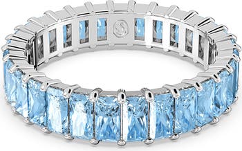 Baguette-cut Swarovski crystals trace an opulent eternity ring that offers glamorous sparkle whether stacked or worn solo.