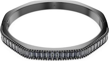 Stack on the shine with this hinged octagonal bangle bracelet boasting luminous baguette-cut Swarovski crystals.