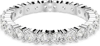 Prong-set round Swarovski crystals catch the light from every angle on a luminous eternity ring that offers glamorous sparkle whether stacked or worn solo.