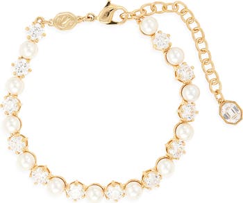 Brilliant round Swarovski crystals and lustrous Swarovski pearls illuminate a timeless tennis bracelet that brings elegant sparkle to any look.