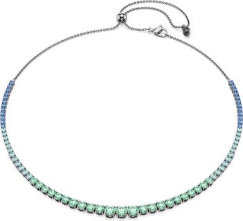 Captivate in this striking tennis necklace designed with a glowing strand of round-cut crystals that transition through green and blue shades, creating an eye-catching effect.