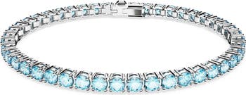 Give your stack a dash of sparkling color with this glittering crystal tennis bracelet.