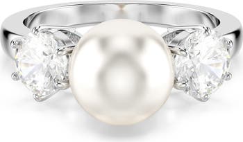 Classic meets contemporary on this faux pearl ring flanked with round zirconia for signature Swarovski sparkle and elegance.