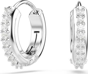 Prong-set crystals bring effortless radiance to these mini hoop earrings perfect for adding everyday glamour to your ensemble.