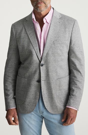 A subtly mottled piqué knit emphasizes the relaxed versatility of a sport coat tailored with crisp construction in the shoulders emphasizing its subtly fitted waist. The lightweight feel and front patch pockets make it an ideal choice for semiformal and warm-weather occasions.