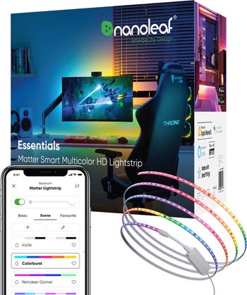 - 300 Addressable LEDs: Watch multiple colors appear at once along your addressable lightstrip for a stunning gradient effect, featuring 60 color zones and LEDs per meter. Dynamic Color-Changing Animations: Create and customize colorful lighting effects with over 16M+ colors. Transition colors slowly for ambience that sets the perfect mood, or increase the speed to energize your space. Screen Mirror: Watch the colors on your screen reflect seamlessly onto your lightstrip. Screen Mirror with your PC via the Nanoleaf Desktop App, or with your TV using Nanoleaf 4D with Sync+.* (Screen Mirroring via Nanoleaf 4D Sync+ will be available in a future firmware update.) See Your Music Come to Life: Watch your lights react to sound and dance to the beat of your favorite music. Trimmable: Easily reduce the length of your lightstrip to fit any space by cutting along the indicated lines. Matter Enabled: Enjoy instant compatibility with major smart home ecosystems like Apple Home, Google Home, and Amazon Alexa. To use Matter, iOS/tvOS 16.5+ or Android OS 8.1+ and a Matter-compatible hub are required. Control It Your Way: Use the attached in-line controller to manage your HD Lightstrip (brightness, cycle through scenes, ON/OFF), or open the Nanoleaf App over Wi-Fi or Bluetooth for more customization. Go hands-free and activate features through voice commands with your smart home assistant. Set Schedules: Automate your lights to turn ON/OFF at set times to simplify your routines. Set schedules through your smart home ecosystem or voice assistant — Matter-compatible smart home hub required.