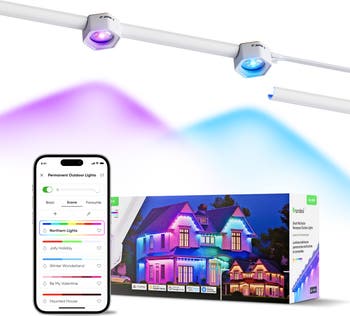 Light up your outdoors all year round with our Matter-enabled Smart Multicolor Permanent Outdoor Lights with Side Clips. These LED lights are crafted for durability and seamlessly blend into your home's exterior during the day. Come nightfall, transform your surroundings with vivid and vibrant lighting effects. Install along eaves and soffits to enhance the aesthetic appeal and safety of your home. Included screws are required for reinforcement and permanent mounting.