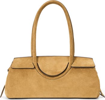 The Maude family welcomes its newest addition with this shoulder-bag version updated in a structured East/West silhouette of supple suede. The rolled shoulder straps are integrated into the body of the bag, creating an uninterrupted loop that's especially chic.