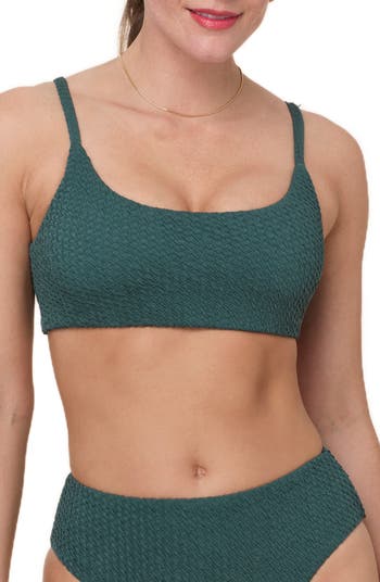 Tonal texturing brings an air of sophistication to this stretchy bikini top that moves with you.