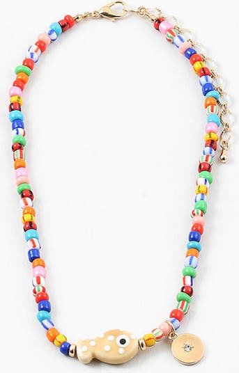 Multi-colored beads with a ceramic fish and gold disc makes this one a must have for a twist of fun and whimsy!