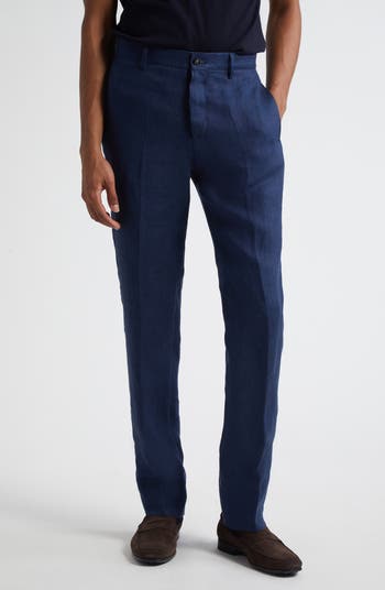 The Milanese label’s mastery of understated luxury shines through in these flat-front pants crafted from rich, breathable linen.
