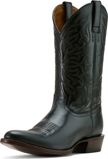 Five-row flame stitching brings traditional detailing to this Western boot cut from soft, well-grained leather with a flexible, handcrafted sole.