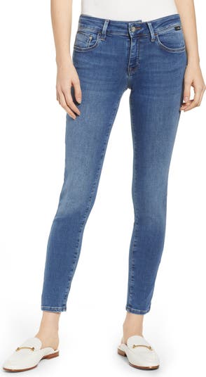 Essential skinnies hug every curve in exquisitely soft stretch denim aged with perfectly placed fading and whiskering over a classic blue wash. Part of Mavi's SuperSoft collection, this pair offers amazing shape retention and a contoured rise that keeps you feeling comfortably held in.