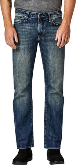 Prominent sanding and whiskering burnish the broken-in vibe of perfectly faded jeans made from stretch denim in a bootcut fit for comfort that moves with you.