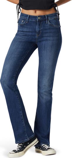Flattering bootcut flare gives leg-elongating style to these supple stretch-denim jeans.