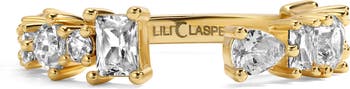 Mixed-cut cubic zirconia lend glamour and sparkle to this cuff ring plated in 14-karat gold.