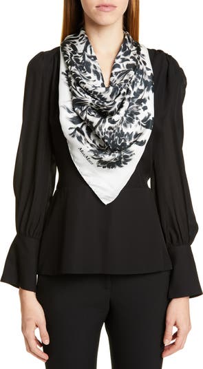 Dreamy floral brushstrokes lend softness and grace to a fluid silk scarf.
