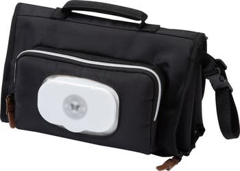 Keep all your changing essentials in one place while out and about with this clutch designed with a zip-off hanging organizer for diapers and other items. An exterior wipes compartment makes for easy clean-ups, and the changing pad itself is extra thick and easy to wipe clean.
