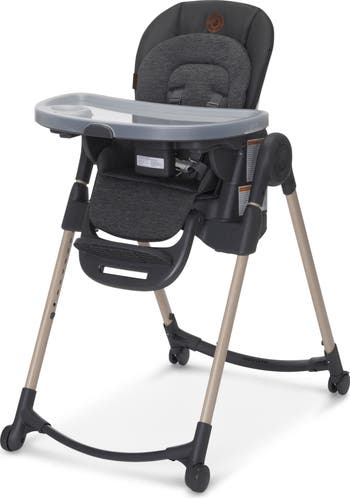 With five recline positions, four tray positions and eight different height settings, this highchair is full of possibilities. You can use it as a relaxed infant seat with a cozy inlay, as a classic highchair or as a booster seat with a tray. Also, the zip-off seat pad is easy to wipe down or throw into the laundry after a messy meal. Key to the design is the use of EcoCare, 100%-recycled fabric made from plastic bottles. The yarn produced is soft, comfortable and breathable—perfect for your little one.