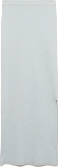 A shimmery metallic knit brings cozy-chic style to this soft, lightweight sweater-skirt punctuated by an alluring side slit.