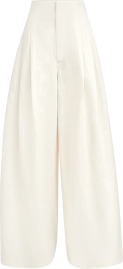 - Zip closure with metal hook and backing buttonVertical front pocketsDouble pleatBack patch pocketsPlain hem