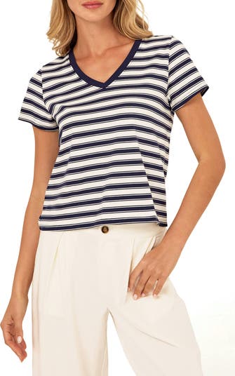 Allover stripes enliven this everyday T-shirt made with a kiss of soft and smart organic cotton.