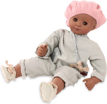 Patiently, little Maxy Muffin is waiting for her doll mummy or doll daddy to go to town and have some ice cream. She put on her chic overall in pastel colours and cool fabric shoes. Don't forget your knitted cap in rose colour. What a nice style! Our Maxy Muffins have a soft fabric body with vinyl arms and legs. Children can easily undress them and put their clothes back on. This Maxy Muffin has brown sleeping eyes. Set includes 16.5" baby doll, jumpsuit, fabric shoes and cap. For over 60 years, German-designed Gotz dolls have been known for their superior quality and durable craftsmanship, to become a child's favorite playmate. Their endearing faces and expressions speak directly to every doll parent.