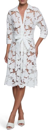 Cut from delicate lace, this full-of-romance frock is made with a polished collar and a defining tie belt.