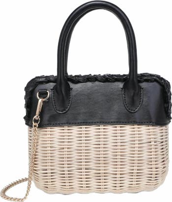 - Exterior Details: Woven Design With Vegan Leather Accents, Gold Hardware, Detachable Chain Strap