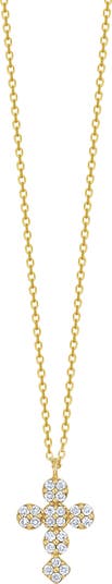 A stunning arrangement of white diamonds shimmers from the cross pendant of this handcrafted chain necklace made from 18-karat gold.