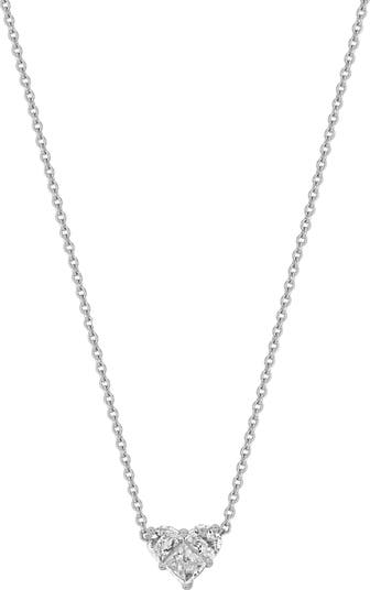 A trio of diamonds illuminates this delicate heart pendant necklace handcrafted from 18-karat gold.