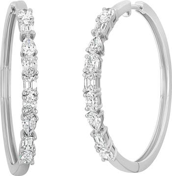 Mixed-shaped diamonds lend visual intrigue and opulent sparkle to these handcrafted 18-karat gold hoop earrings ready to illuminate your ensembles.