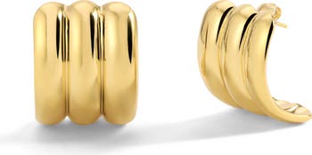 The Maya Earrings feature a modern, minimalist aesthetic with three sleek, parallel bar elements that form a geometric, slightly curved silhouette—ideal for making a subtle yet stylish statement. Available in mono–gold or alternating gold & silver metallic finishes.