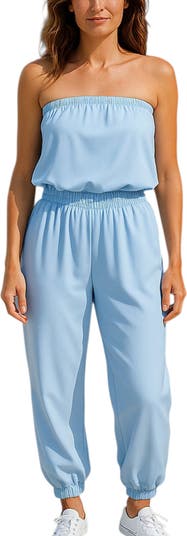 Strapless jumpsuit with an elastic waistband.