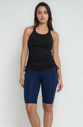 This fun and versatile swim set features the Maya Tankini Swim Top with Built-In Bra and the Long Bike Swim Shorts, designed for comfort and functionality. The Maya top offers a built-in bra for shaping and support, while side ruching ensures a flattering, adjustable fit. The racerback design allows for easy movement, and the quick-dry fabric keeps you comfortable all day. Paired with the long bike swim shorts, which provide full coverage and a high-waisted fit, this set is perfect for swimming, water sports, or just relaxing by the pool. Both pieces offer UPF 50+ sun protection, making this set ideal for any sunny day adventure.