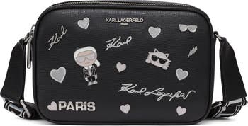 Stay stylish on the move with the classic KARL LAGERFELD PARIS crossbody bag featuring an adjustable strap, offering the perfect blend of comfort and versatility for any occasion.