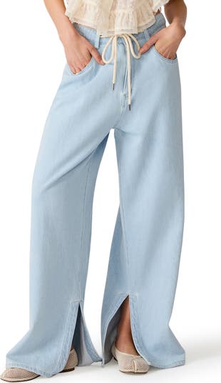 Kick it all weekend in pair of slouchy jeans cut from softy-yet-sturdy nonstretch denim, slit at the cuffs and cinched with a ropy drawstring at the waist.