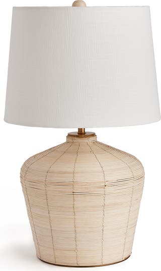 - Woven in a whitewash cane rattan, with subtle variations in color that makes each one truly unique, this lamp is an instant classic. Topped with a wide cylindrical shade, a perfect accent for bedroom, living room or study.