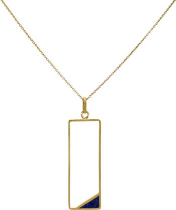 Inspired by contemporary architecture and expertly handcrafted by artisans in Kabul, this geometric pendant will make a subtle impact and is perfect for everyday wear. Cutout necklace with small lapis lazuli stud. Lobster clasp fastening.