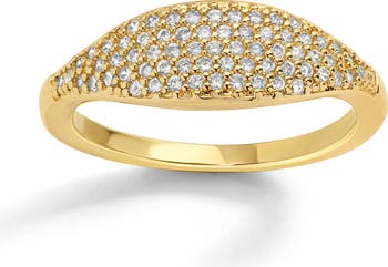 The Eugenie Ring is distinguished by a softly rounded rectangular (almost cushion-cut) face that rises slightly from the band. This central section is pavé-set with tiny, brilliant white cubic zirconia stones, giving the surface a shimmering look. Overall, it combines minimalism with a luxe feel. It's understated enough for everyday wear, but with just enough sparkle to be dressed up. Think of it as a modern twist on a classic signet ring—elegant, clean-lined, and ideal for stacking or wearing solo for a subtle statement.