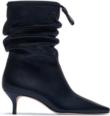 Bohemian nonchalance. Mazzi is a masterclass in modern femininity. Designed on a delicate kitten heel, with a softly ruched shaft and drawstring detail, this bootie’s silhouette flatters the leg with subtle drama and a touch of Parisian grunge.\nThe Bernardo1946 capsule collection takes inspiration from our archives, reflecting our founder Bernard Rudofsky’s dedication to timeless design, premium materials, artisan handcrafted quality, and uncompromising comfort.