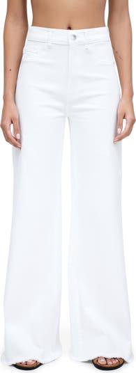 Effortlessly chic in white-wash nonstretch denim, these full-length jeans fit relaxed through the thighs and release into wide legs ending in raw hems.