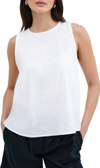 An edgy exposed zipper punctuates the back of this airy sleeveless top made from an ultralightweight blend of linen and cotton.
