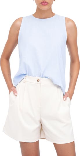 An edgy exposed zipper punctuates the back of this airy sleeveless top made from an ultralightweight blend of linen and cotton.