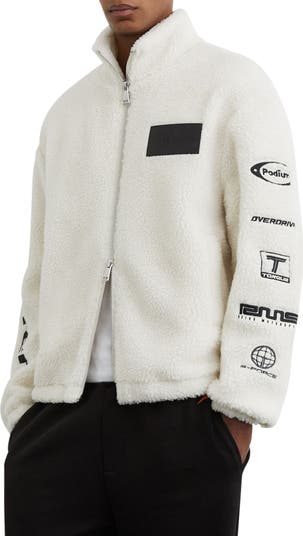 The iconic logos of the Italian automaker define a sporty jacket made from plush fleece.