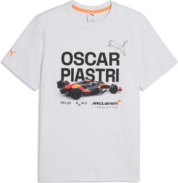 Bring the McLaren mindset into your daily rotation with an all-cotton T-shirt featuring a bold center graphic that hits like a clean launch off the line. Celebrating driver Oscar Piastri, it’s a straightforward salute to the team’s high-speed legacy.
