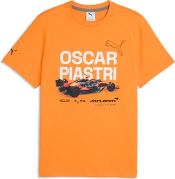 Bring the McLaren mindset into your daily rotation with an all-cotton T-shirt featuring a bold center graphic that hits like a clean launch off the line. Celebrating driver Oscar Piastri, it’s a straightforward salute to the team’s high-speed legacy.